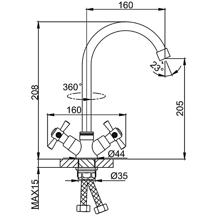 Гибкая подводка приобретается отдельно